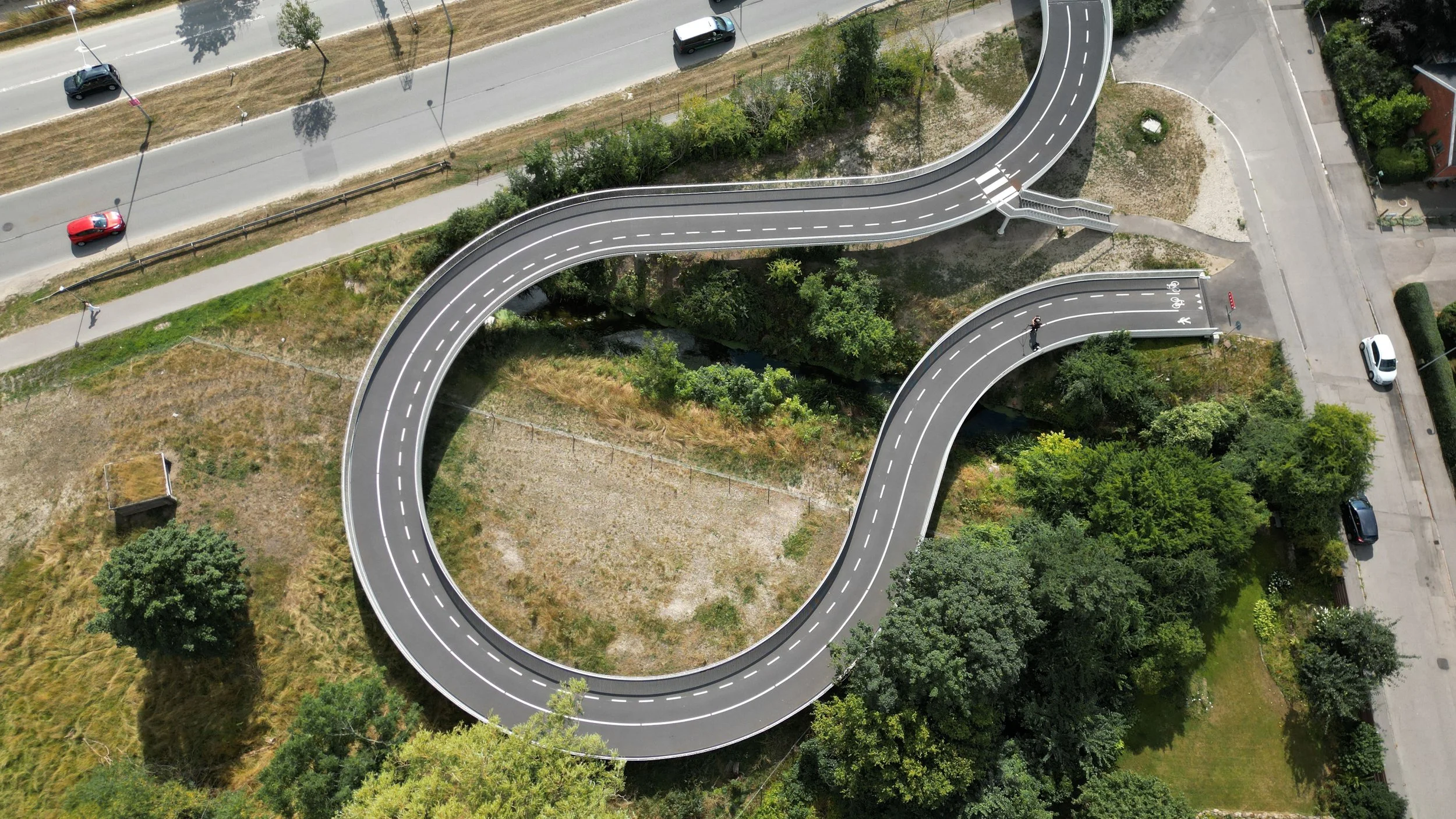 På det nordlige brohoved slår forbindelse en glad krølle og sikrer ikke bare en elegant landing, men også en forsvarligt tilgængelig stigning af hensyn til kørestolsbrugere.